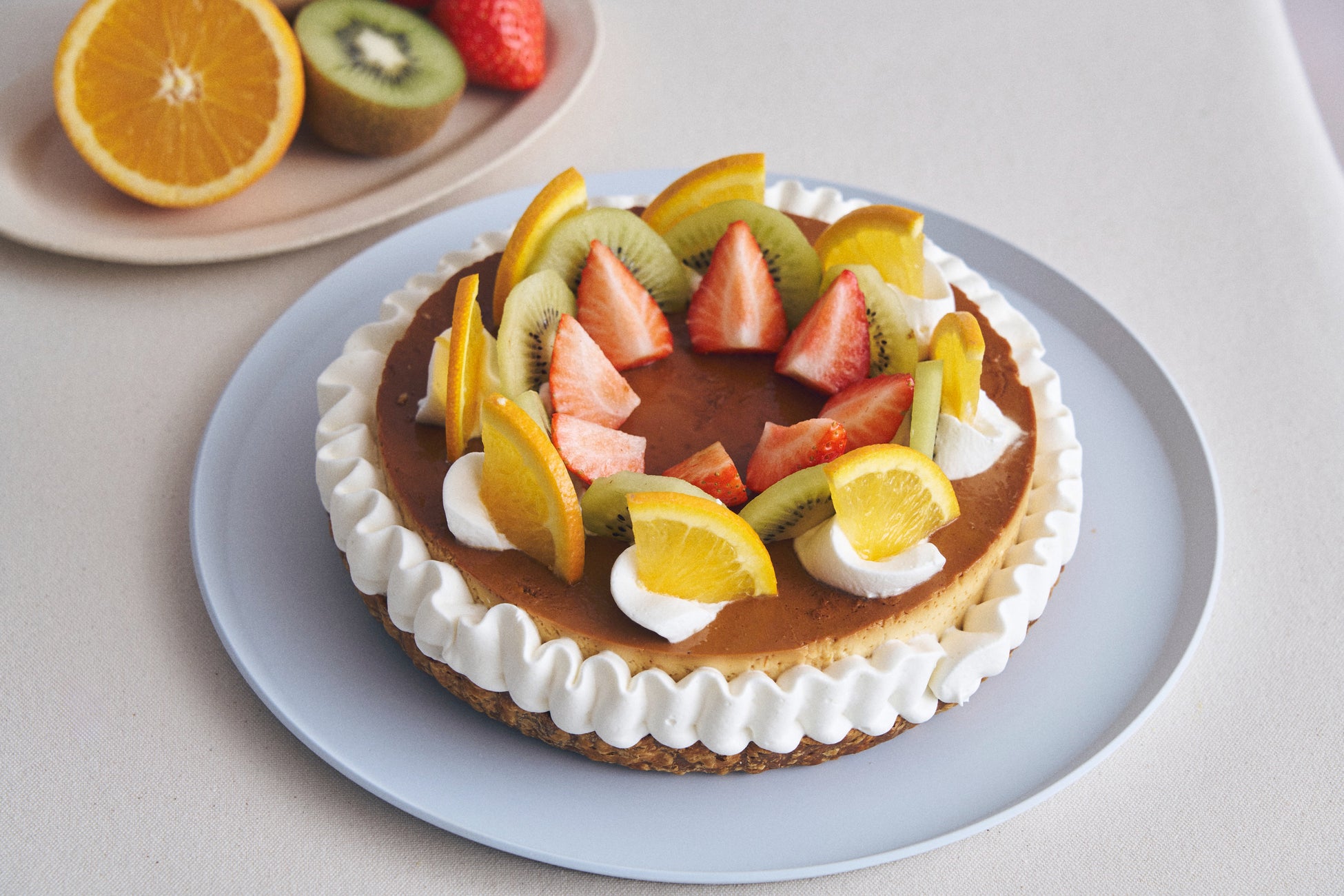 クラシカルなかため食感プリンがパイ仕立てに!北海道ミルクときび砂糖を使用し、やさしい甘さとコクを引き出した自家製プリンに色とりどりのフルーツをトッピング。香ばしくキャラメリゼしたパイのサクサク食感とプリンのしっかり食感をお楽しみください。