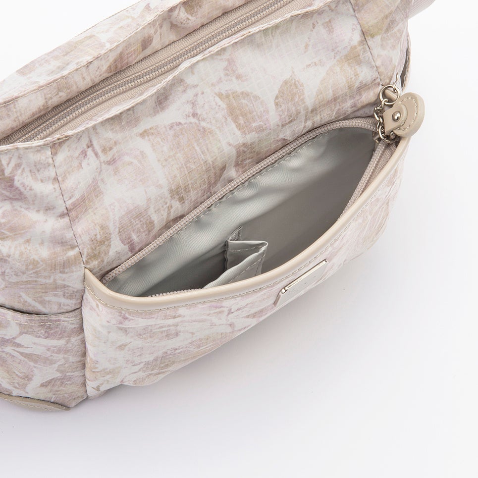 常に体側にくるバッグ背面にセキュリティポケットを配置しました。財布やパスポートなど貴重品の収納に適しています。