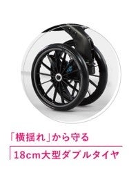■横揺れから守る「18cm大型ダブルタイヤ」
