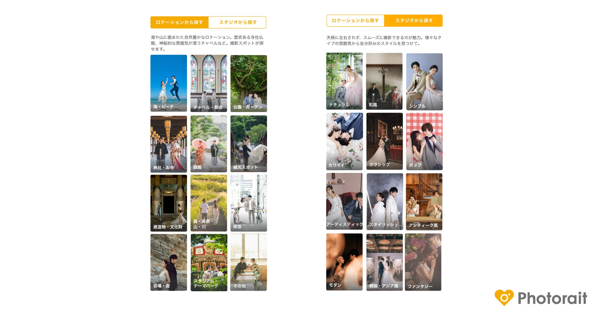 国内最大級のフォトウエディング・前撮りのクチコミ情報サイト「Photorait」|撮影スポットや雰囲気からフォトスタジオを検索できる「スポット検索」機能をリリース