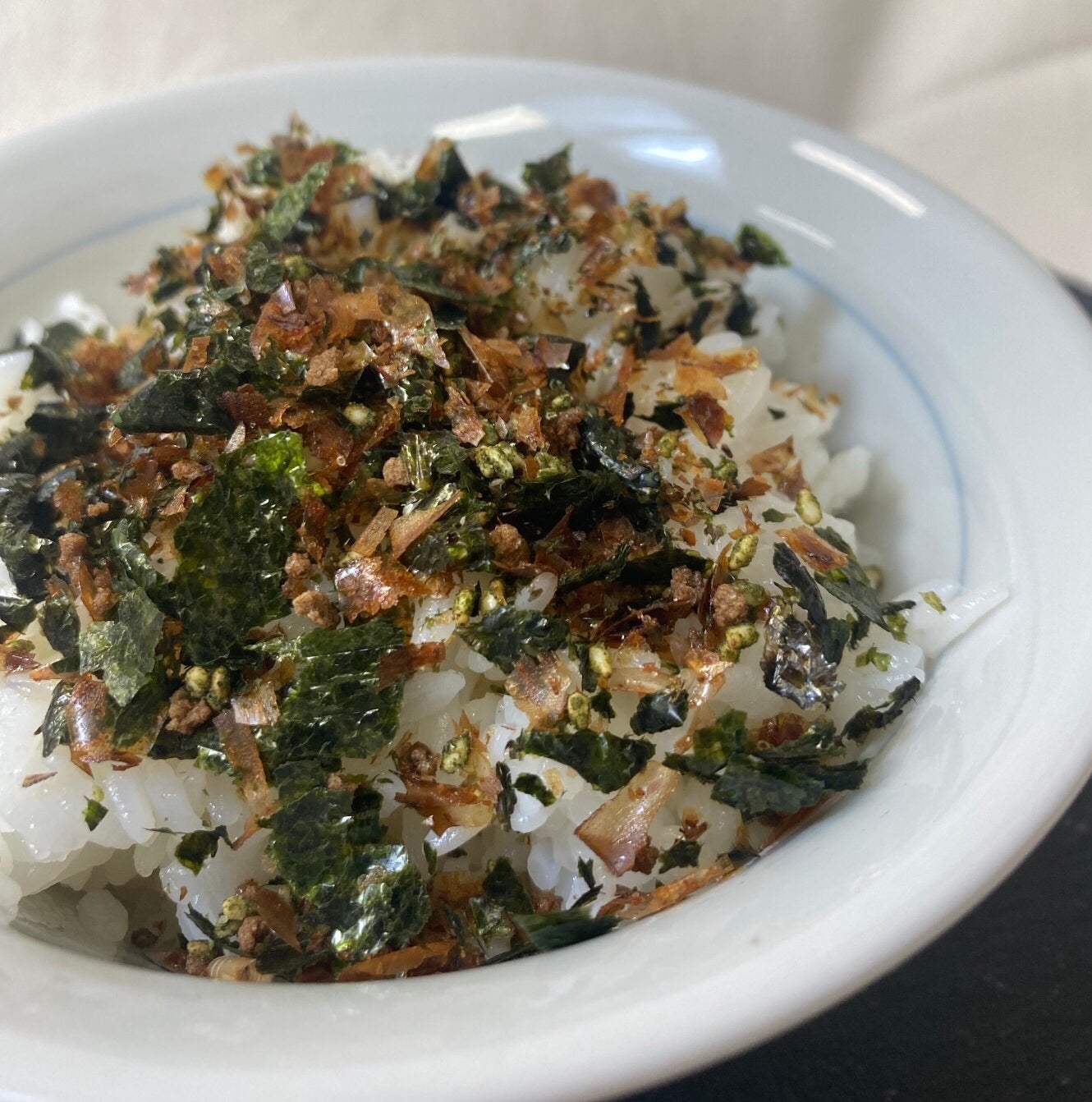 「山本海苔店」の海苔と「にんべん」の金色の鰹だし顆粒をたっぷりと使用した、かつお節と海苔のうま味が詰まったふりかけです。金色(こんじき)の鰹だし顆粒には厳選された本枯鰹節、しいたけ、昆布が使用されており、海苔との相性は抜群です。素材にこだわる日本橋の専門店が作り上げた本格的なふりかけです。そのままご飯にかけるだけでなく、豆腐やサラダにかけて召し上がっていただくのもおすすめです。
