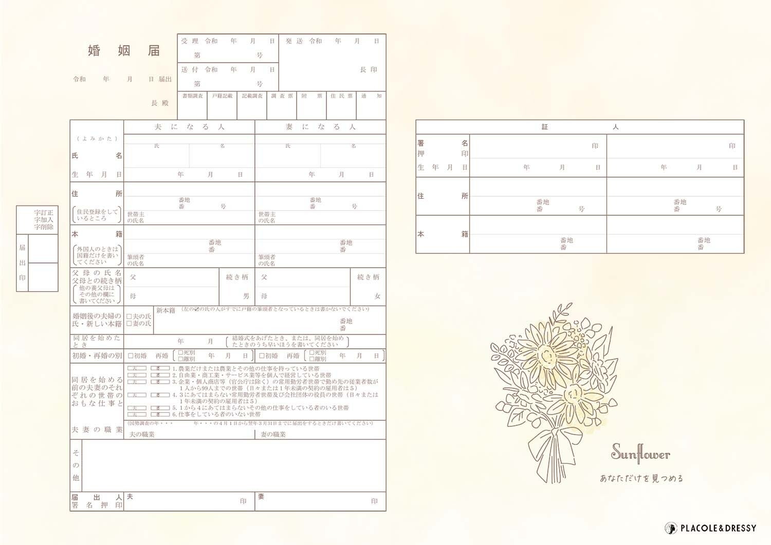 【NEW】<人気デザイン 花言葉婚姻届> ひまわり
