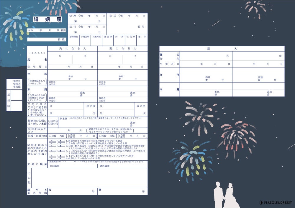 【NEW】<季節限定デザイン>【花火デザイン】婚姻届
