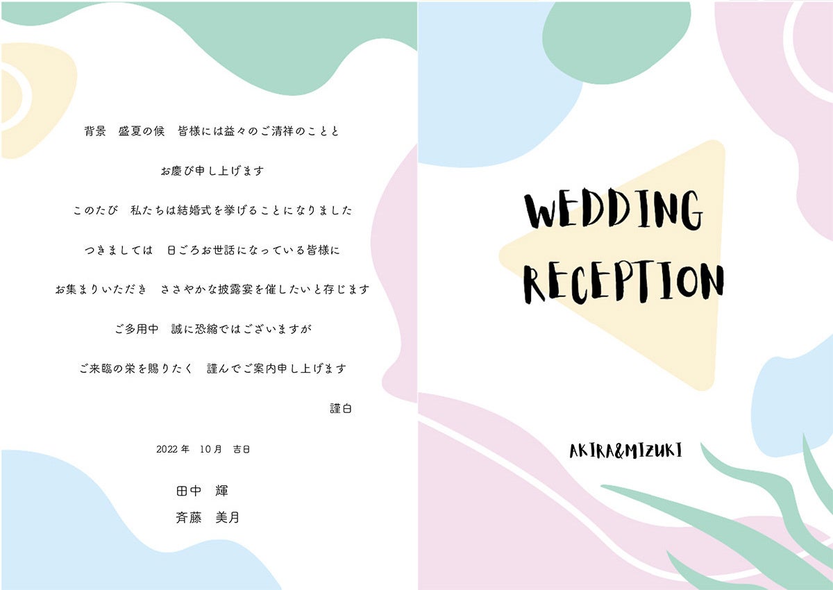 カラフルな花の模様のデザイン。可愛らしくポップなデザインが好みの方におすすめ。珍しいデザインの招待状でとてもゲストの印象に残ります。