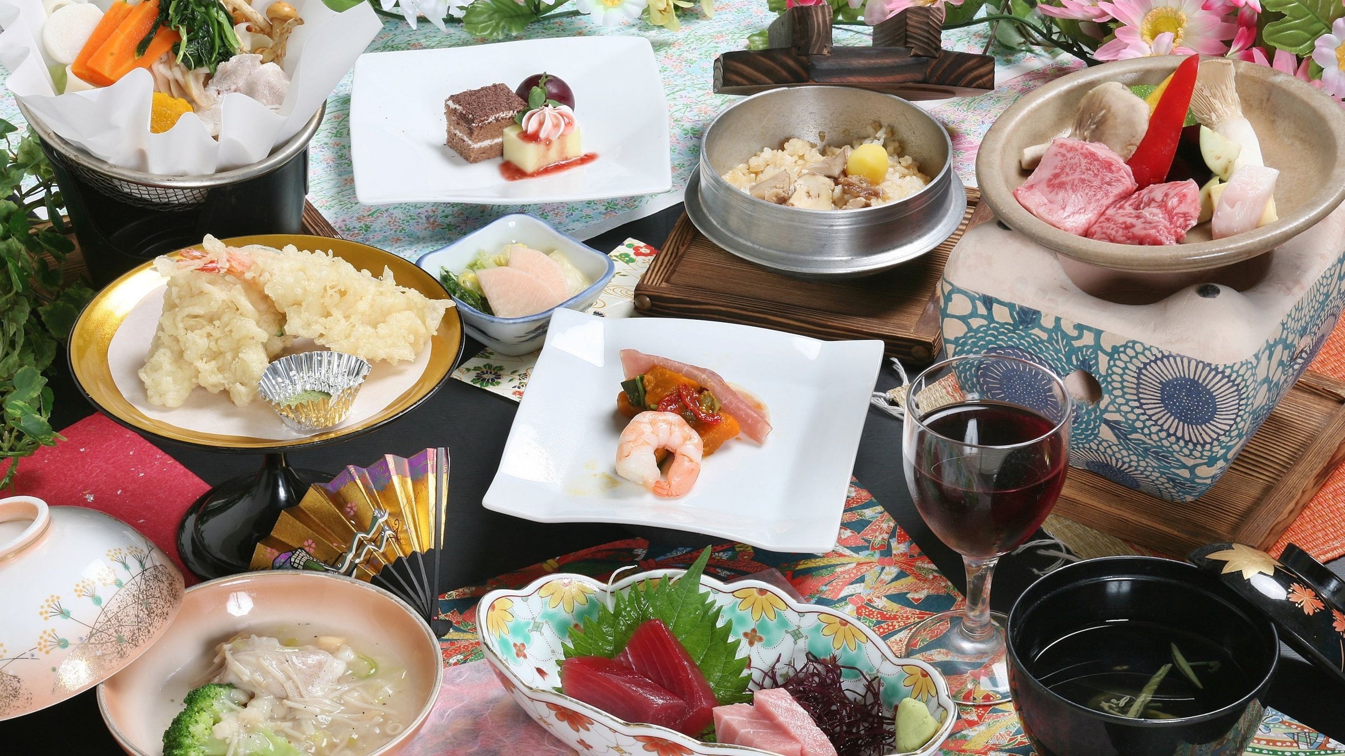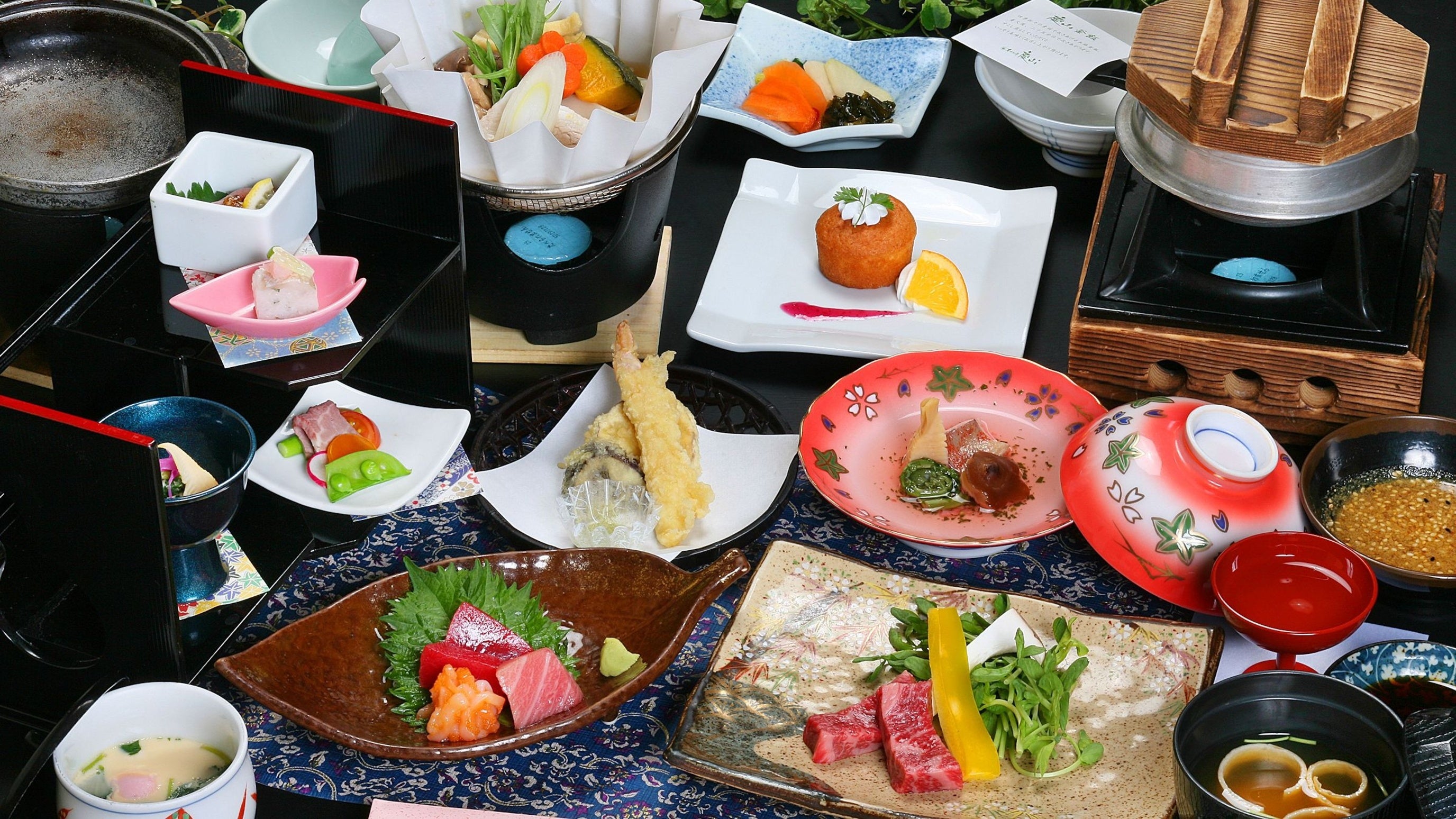 シティ&レジャーカテゴリ3位 山梨県「石和温泉 華やぎの章 慶山」の会席料理(一例)
