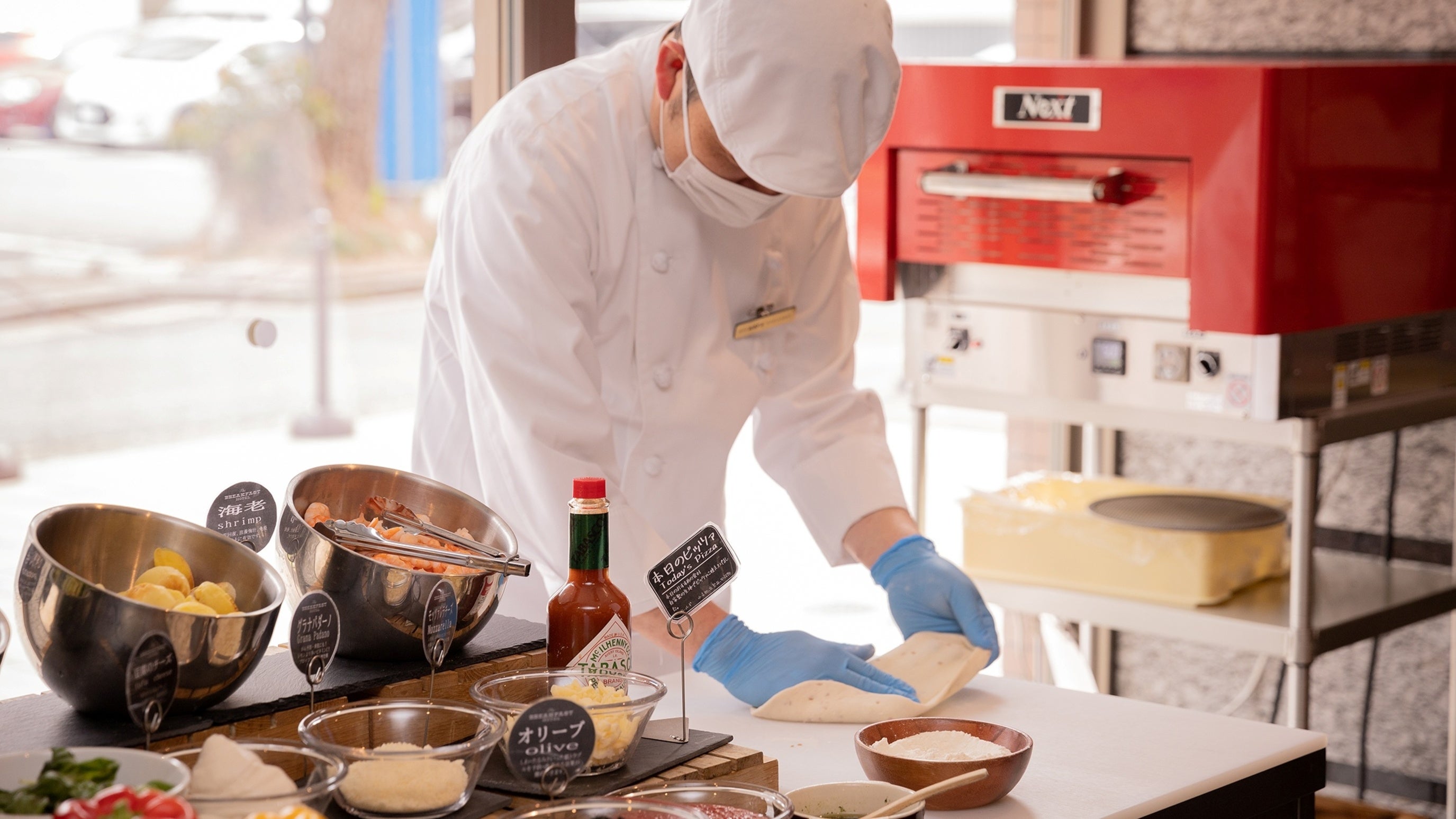 シティ&レジャーカテゴリ1位 和歌山県「ブランシェット南紀白浜」のライブキッチンの様子、夕食ビュッフェ(一例)