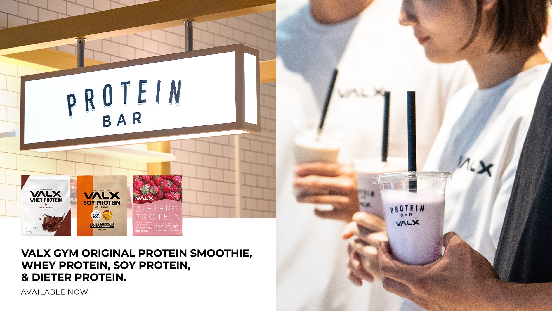累計販売総数196万袋を達成している大人気商品のVALX ホエイプロテインのみならず、ダイエッターに人気のあるソイプロテインや、スイーツのような風味を味わえるダイエッタープロテインもお飲みいただけます。