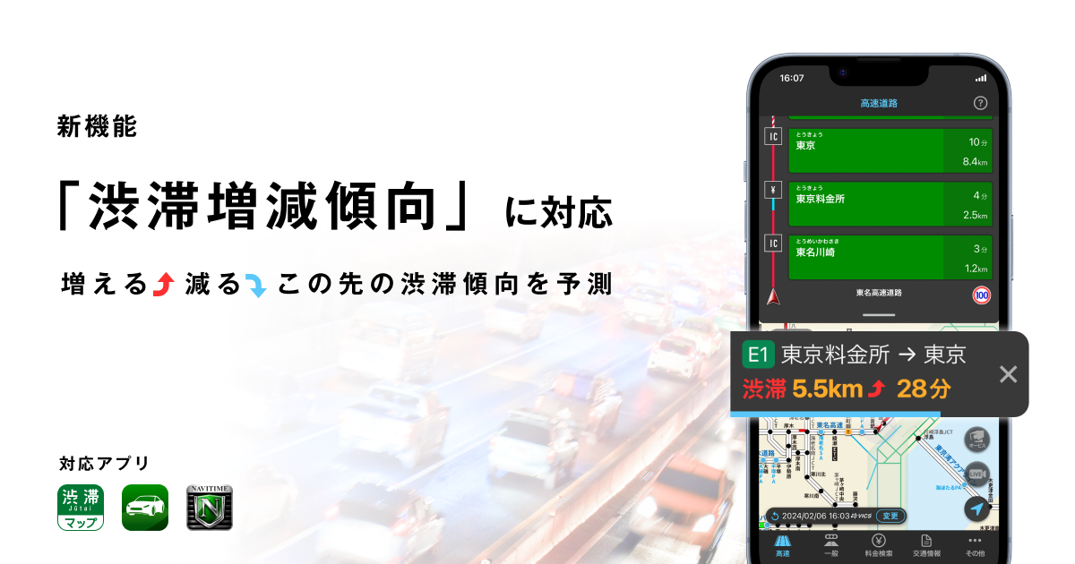 『渋滞情報マップ by NAVITIME』『NAVITIMEドライブサポーター』『カーナビタイム』、「渋滞の増減傾向」情報を提供開始