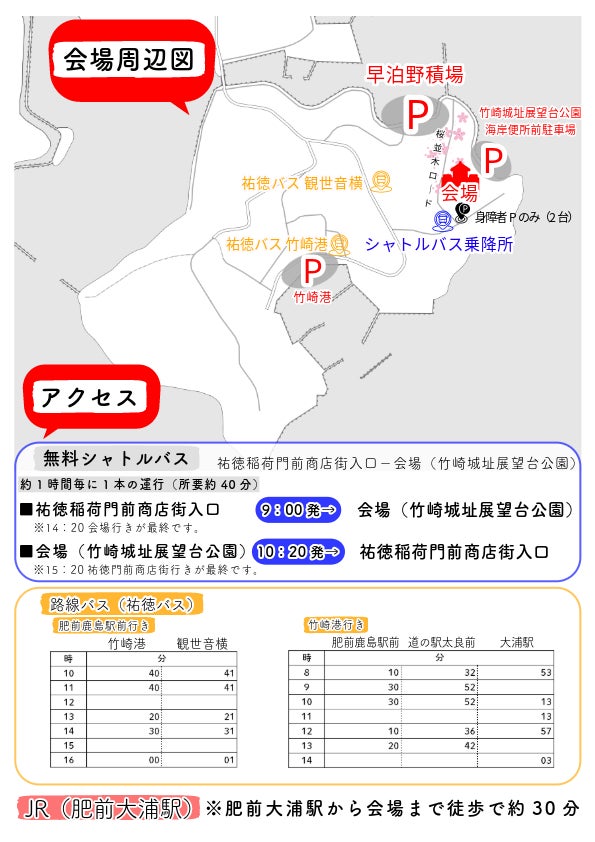 ◎会場(竹崎城址展望台公園)と祐徳稲荷を結ぶ無料シャトルバスの運行