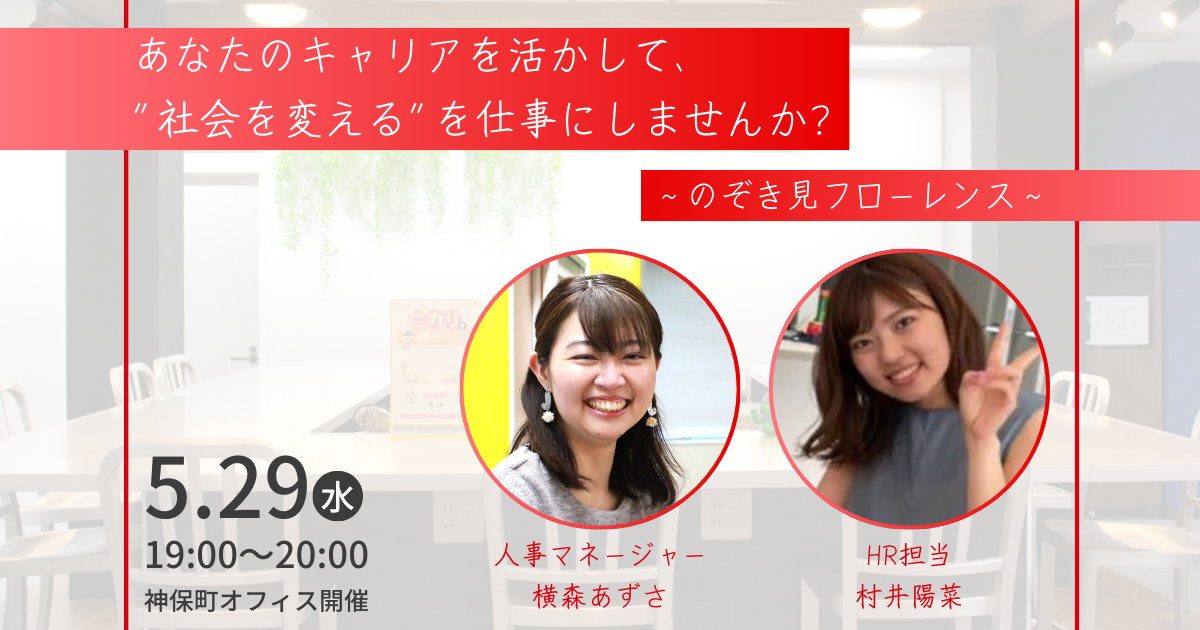 【5/29(水)開催】あなたのキャリアを活かして、”社会を変える”を仕事にしませんか?