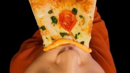 チーズのマグマにピザをダイブ