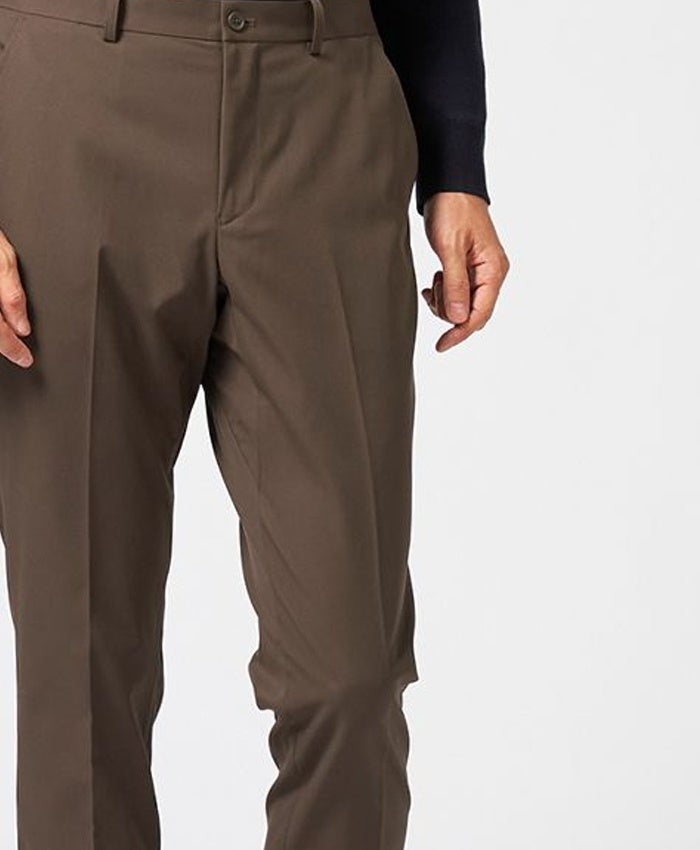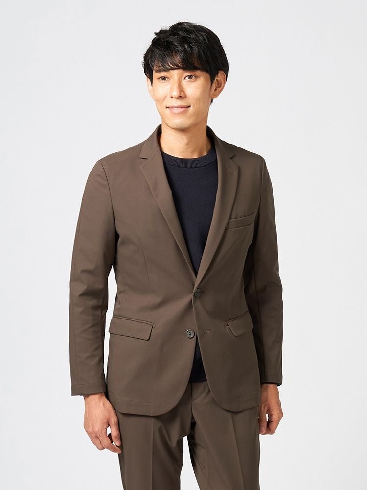「毎日着るお仕事着だからこそ」ラクな着心地、簡単ケアを追求し“快適仕立て”をコンセプトにしたビジネスウェアです。前側は一般的なジャケットと同様のセットインスリーブ仕様、後ろ側は肩回りの動きやすさを追求したラグランスリーブ仕様を採用したジャケットと、股下切り替えを入れたガゼットクロッチ仕様のパンツのセットアップで、スポーツウェアのようなラクな着心地が特長です。自転車通勤や車通勤など体を動かすことが多い方や、WEB会議などを利用するテレワークの方にオススメの一着です。もちろんご自宅でお洗濯可能なウォッシャブル機能、撥水加工や防シワ加工も施しているためケアまでラクなアイテムです。