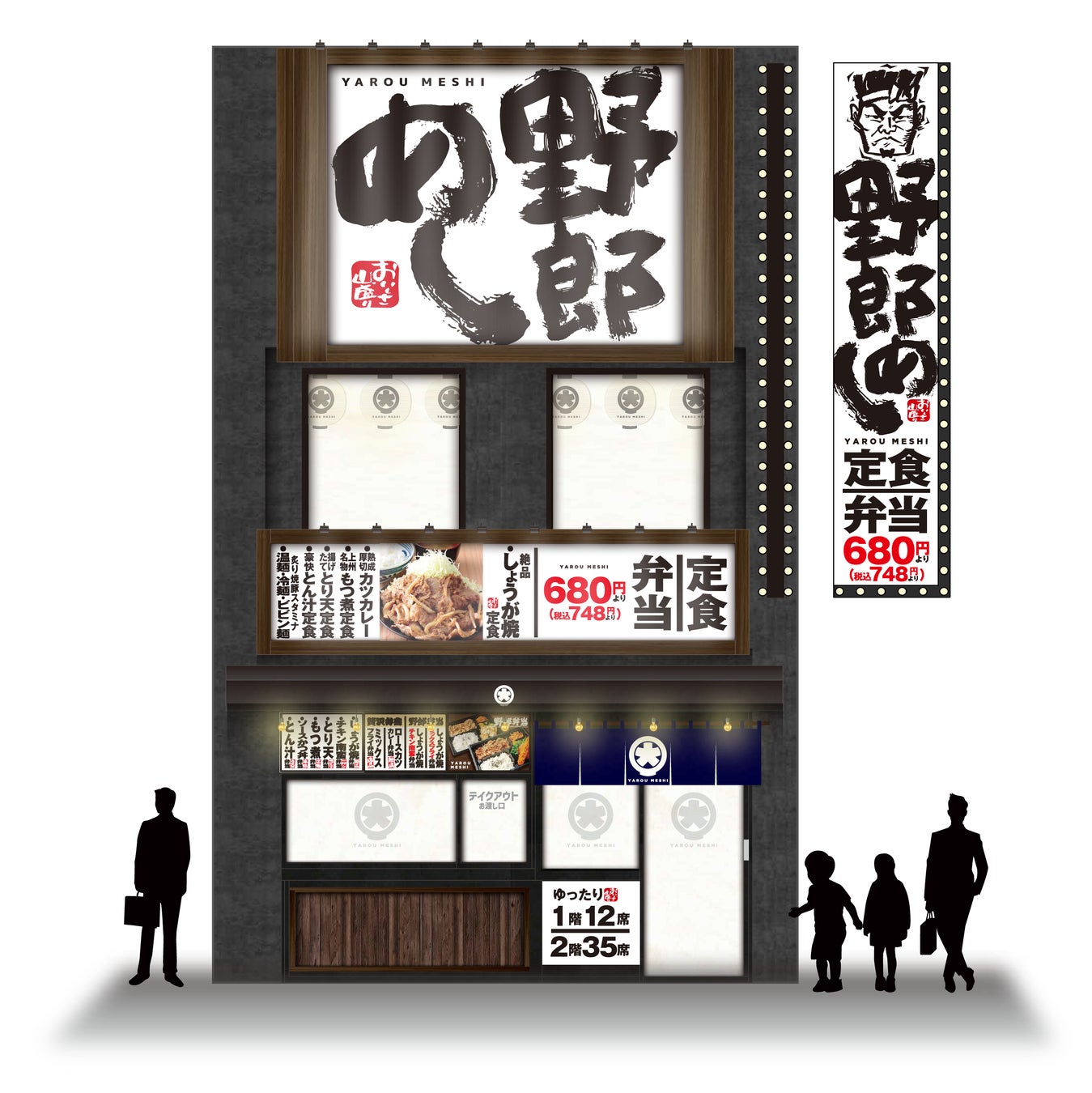 今回初の試みとなる 『野郎めし』 の “都市型店舗” は、今までの “郊外型のロードサイド店舗” とは立地・客層も異なり、近隣のビジネスパーソンのランチや夕食はもちろん、時間帯・老若男女問わず幅広い客層・シーンで気軽にご利用いただけるよう、テイクアウト・弁当等にも対応できる、コンパクトで高効率なお店を目指します。