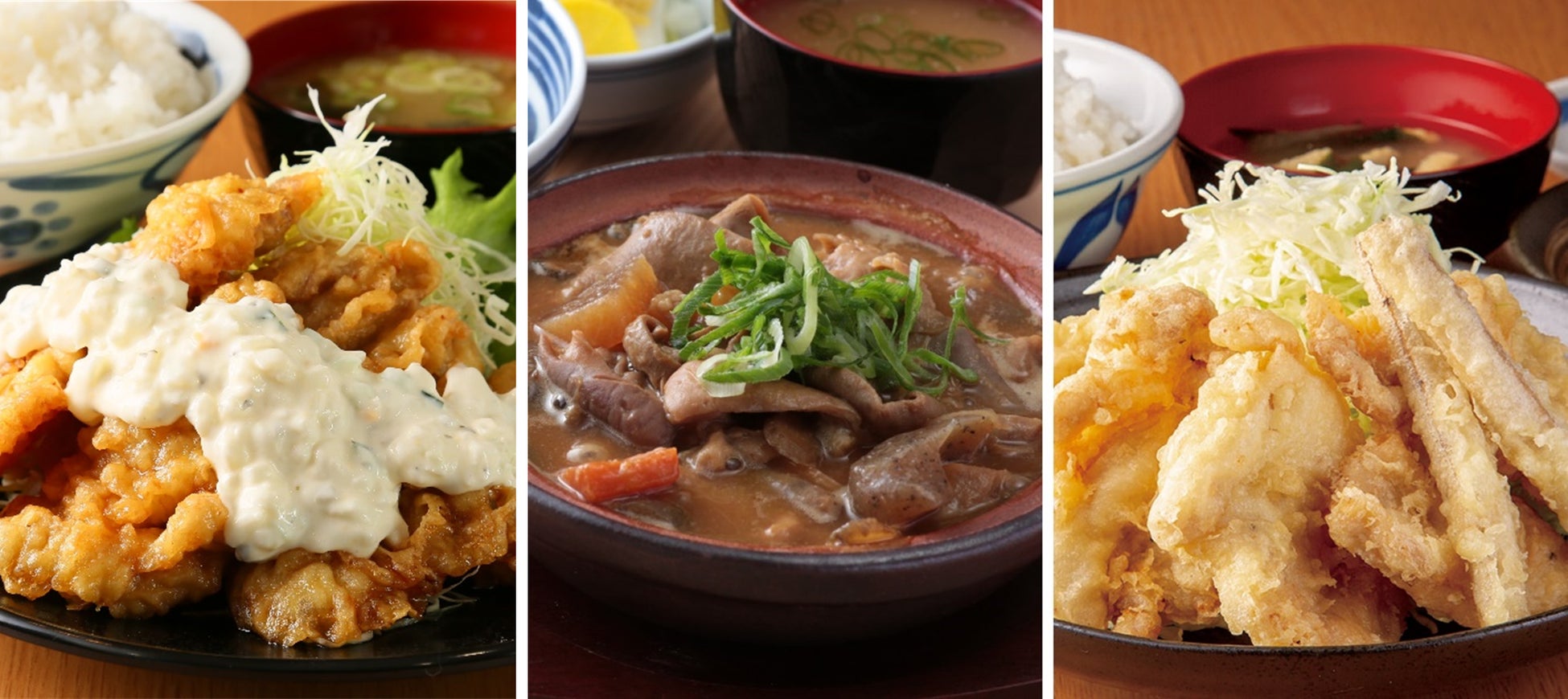 「チキン南蛮定食」 「もつ煮定食」 「とり天定食」