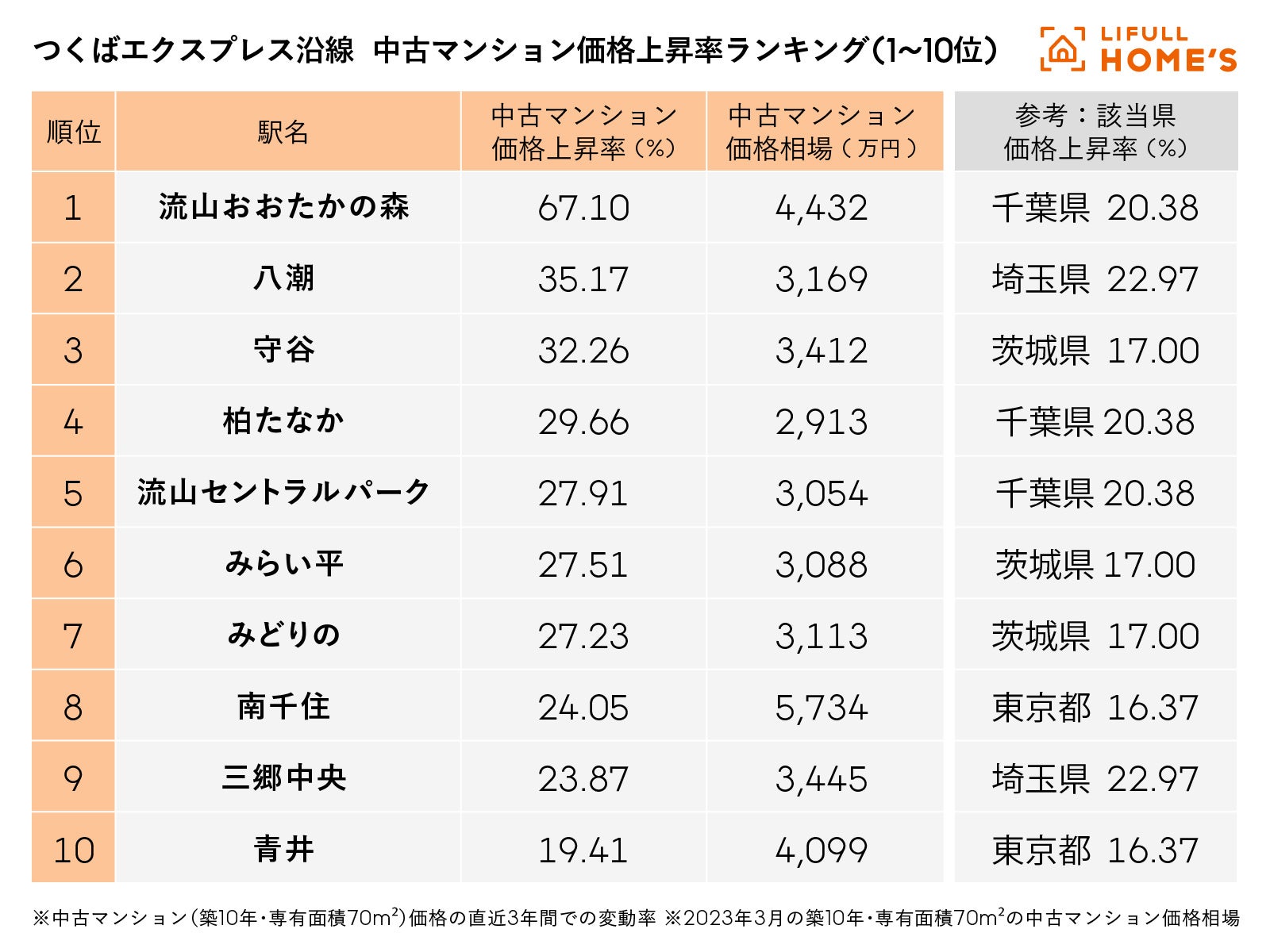 今回、活発な駅周辺開発による資産価値の向上やファミリーで暮らす街としても注目が集まるつくばエクスプレス沿線で「中古マンション価格相場が上がっている駅」をランキング形式で発表します。