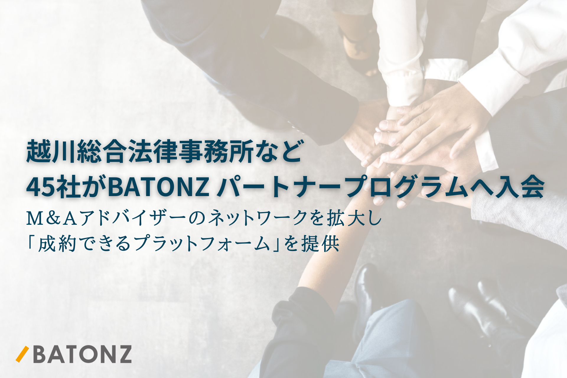 越川総合法律事務所など45社がBATONZ パートナープログラムへ入会