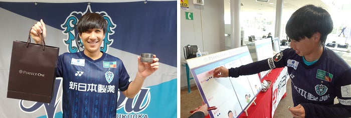 選手の素肌に迫る!新日本製薬がアビスパ福岡の皆さまへパーフェクトワン商品1年分の進呈とスキンケア意識調査を実施