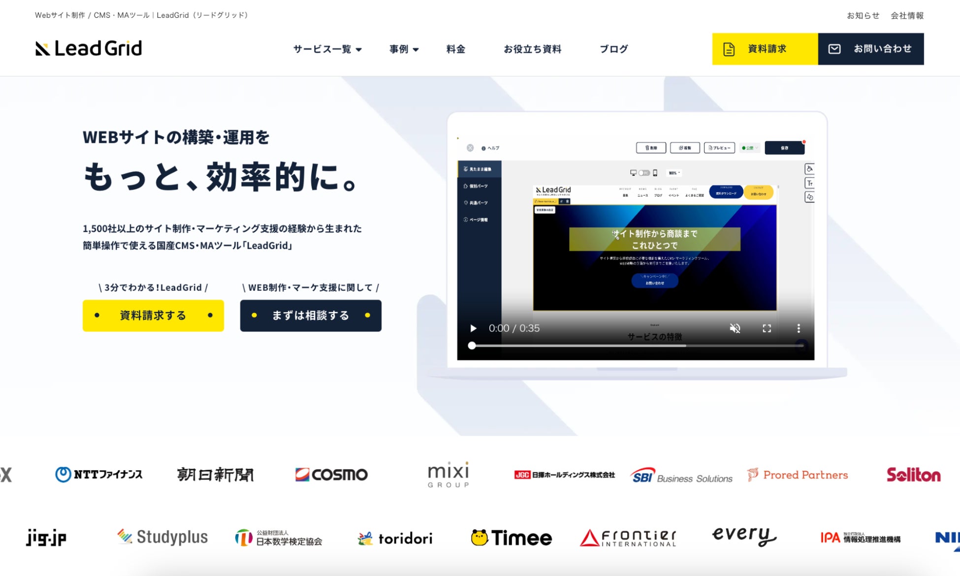 『LeadGrid』は、自社事業および1,500社以上のサイト制作・マーケティング支援ノウハウをベースに、必要な機能を厳選して開発された国産CMS・MAツールです。
