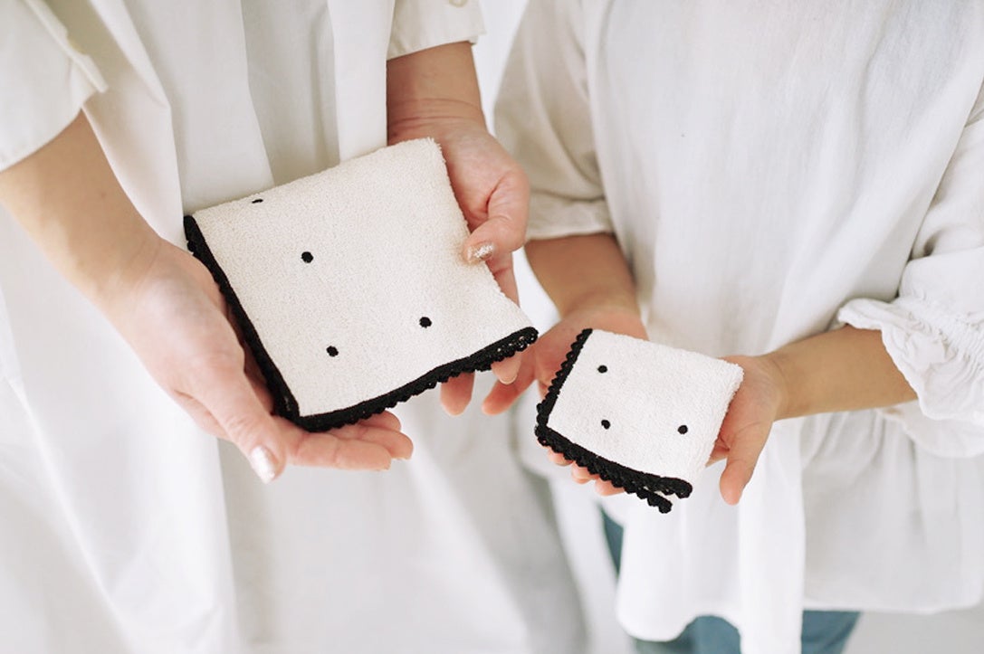 各柄2つのサイズをご用意しており、小さめのサイズは、お子様はもちろん、大人の方のミニマムなバッグにもおすすめです。お出かけの時におそろいで持ったり、親子ギフトにも最適です。