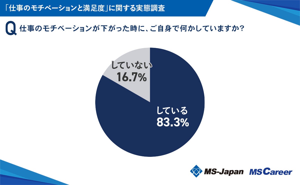 続いて、モチベーションが低下した時に対策を行っている人は、83.3%でした。