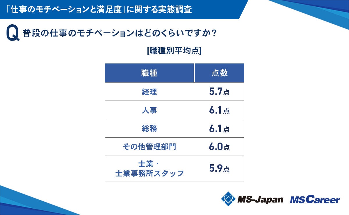 普段の仕事のモチベーションは平均5.9点!MS-Japanが管理部門・士業に「仕事のモチベーションと満足度」を徹底調査