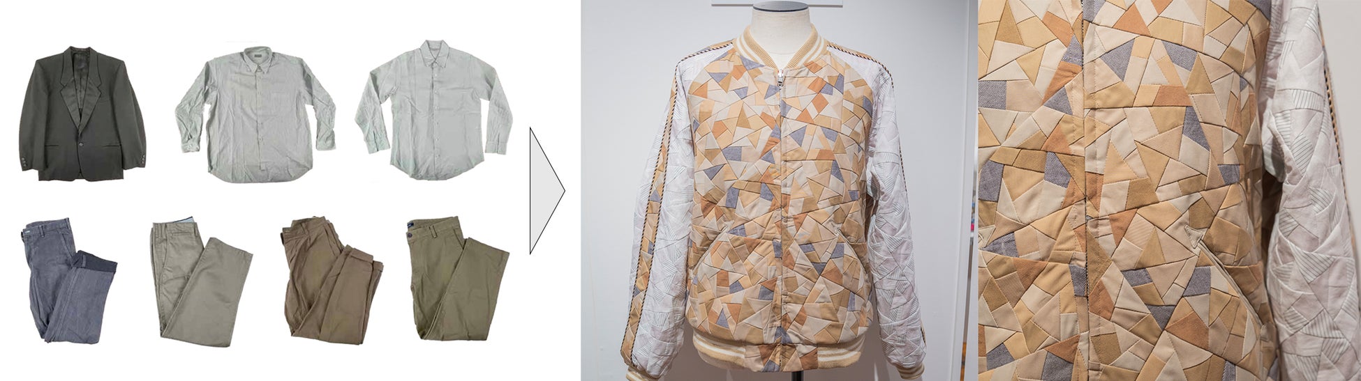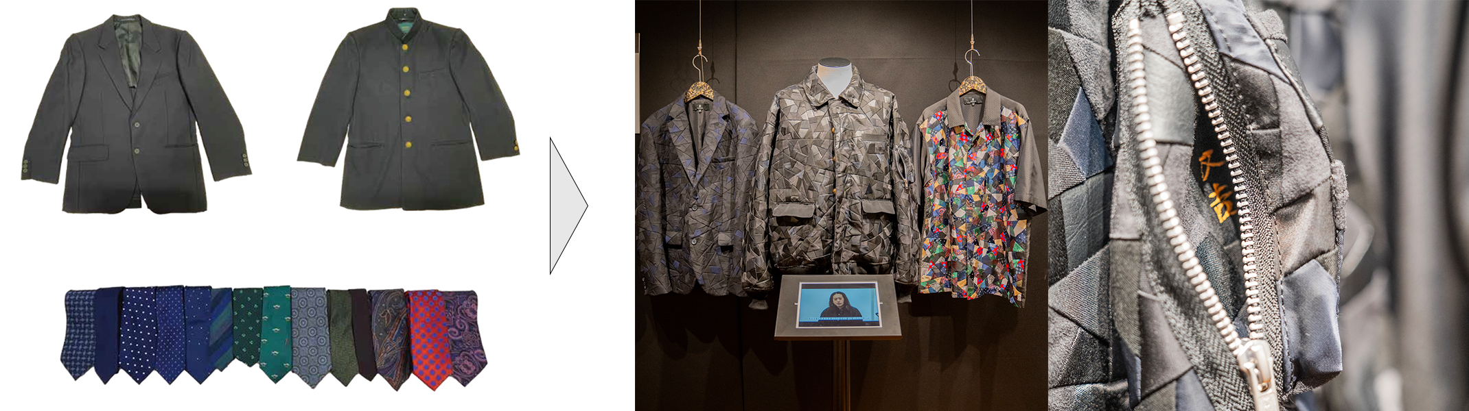 コントで使っていた学ランや、着物の小裂(こぎれ)が「アンリアレイジ」の手であたらしく生まれ変わりました。