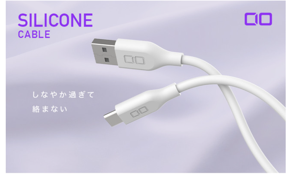 しなやかなシリコン素材&急速充電ケーブル『CIO-SL30000』シリーズは肌触りに優れた柔軟なシリコン素材ながらも、30000回の折り曲げテストをパスするなど高耐久かつ急速充電に対応した新感触の充電ケーブルです。