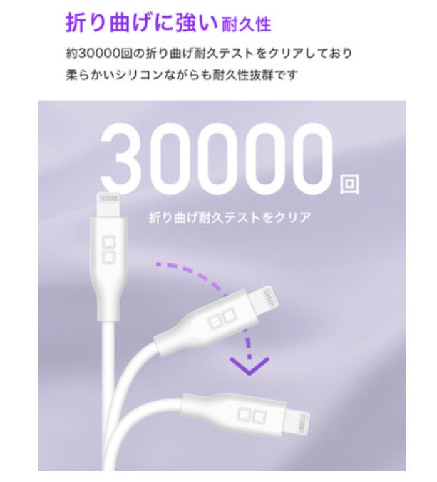急速充電対応・30000回の折り曲げテストをクリアした高耐久仕様(0.5m)