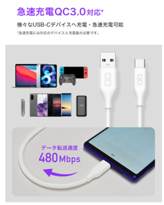 高耐久・心地のよい肌触り・しなやかで絡まりにくいシリコン素材の急速充電USBケーブルに【0.5m】が新登場!