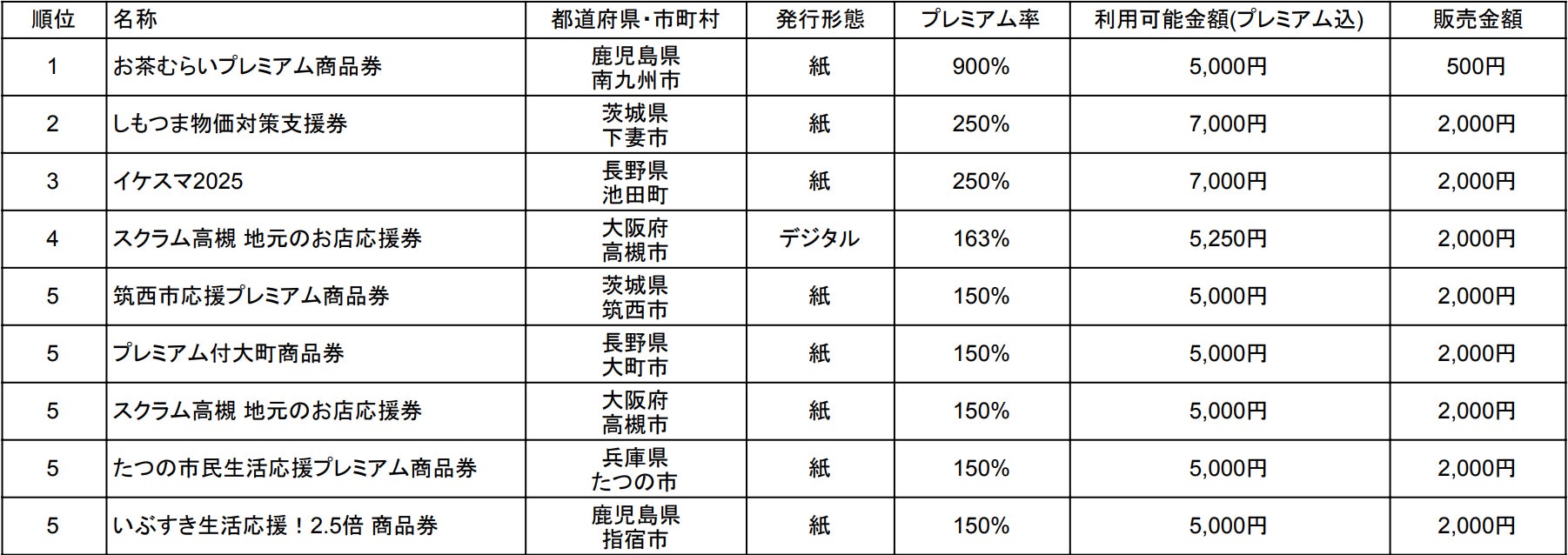 Gigi株式会社(代表取締役:今井了介、所在地:東京都港区)は、政府が物価高騰対策の一環として「おこめ券」や「プレミアム商品券」の配布意向を示したことを受け、2025年に全国で発行されたプレミアム商品券625件を対象に実態調査を実施しました。