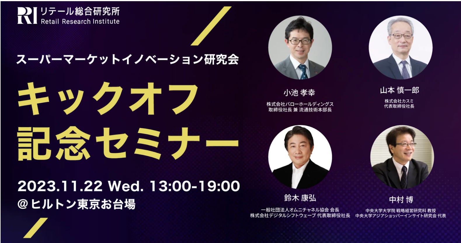 本研究会の発足に伴い、11月22日に業界のキーパーソンやプロフェッショナルが登壇する「スーパーマーケット業界が今向き合うべき課題」をテーマにしたキックオフ記念セミナーも開催します。