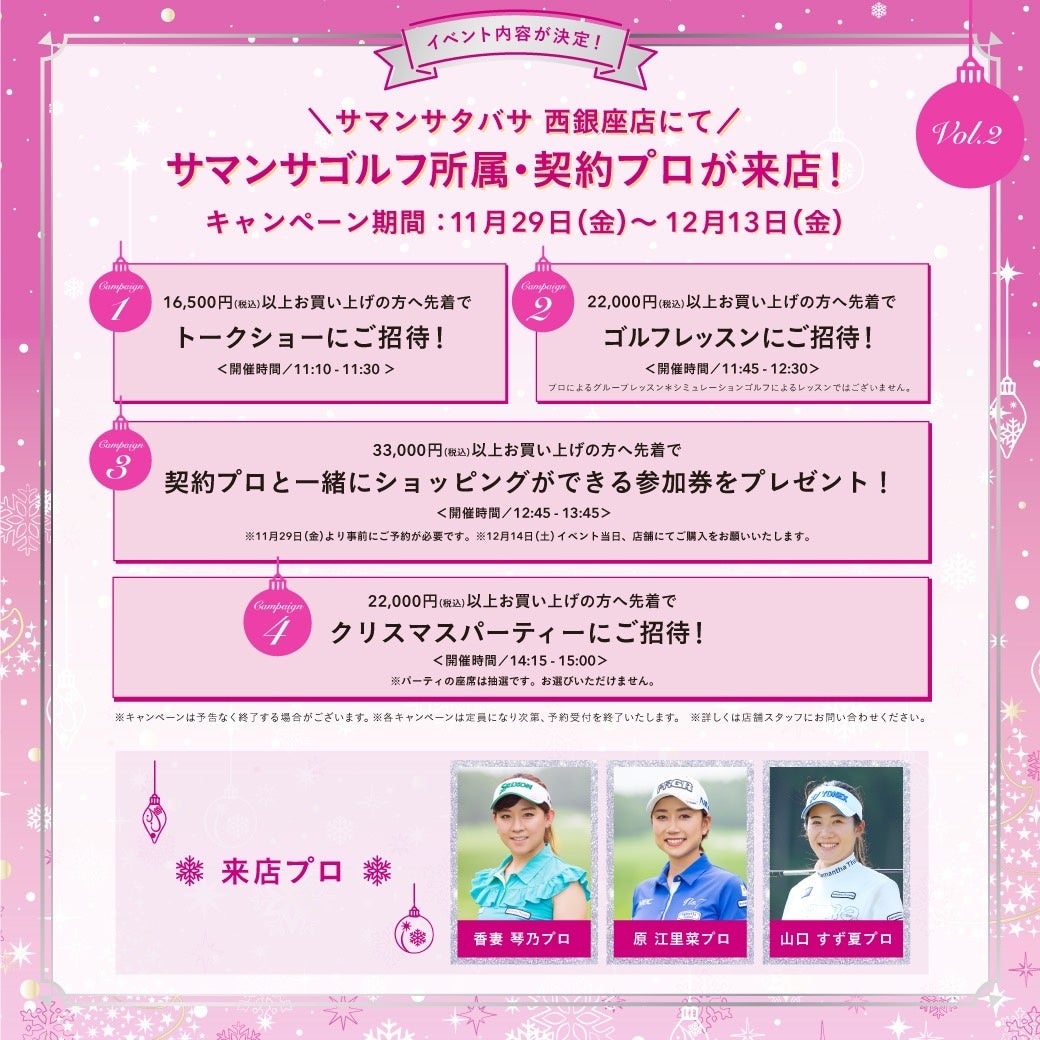 サマンサゴルフ所属・契約プロが来店決定!クリスマスのスペシャルイベントをサマンサタバサ 西銀座店にて開催。
