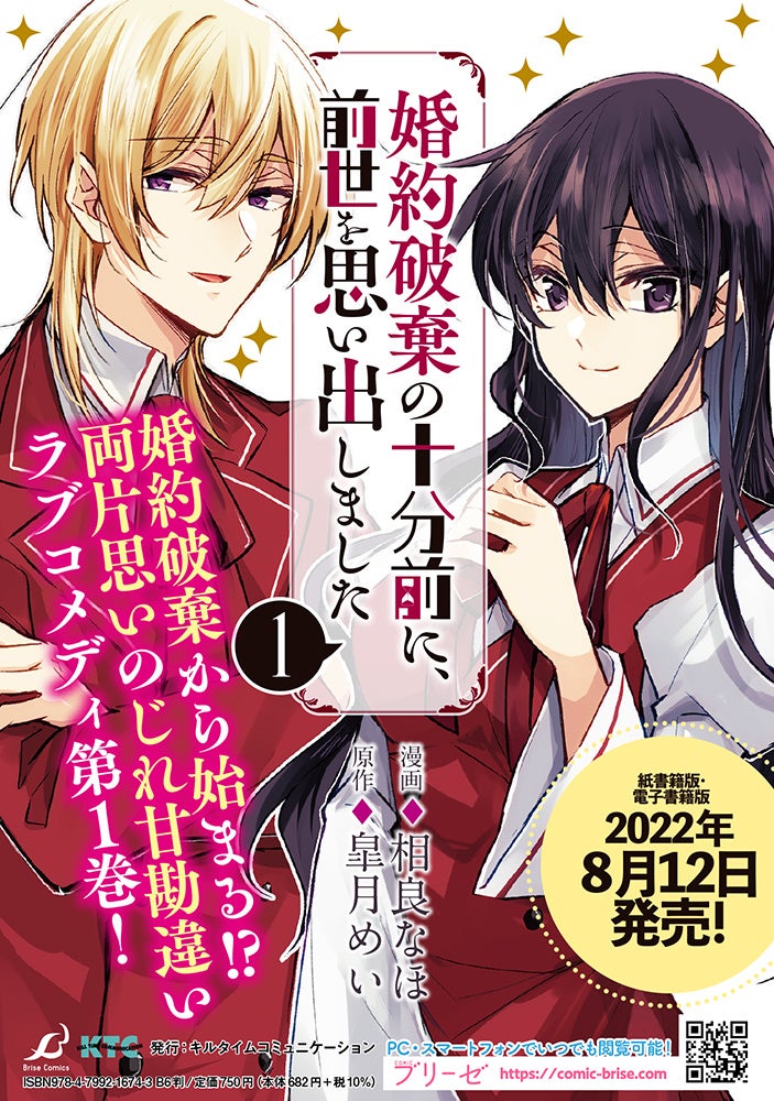 キルタイムコミュニケーション(東京都中央区)は、ブリーゼコミックス『婚約破棄の十分前に、前世を思い出しました 1』を本日8月12日に発売し、人気声優の鬼頭明里さん、下野紘さんが出演されたPVを公開いたしました。