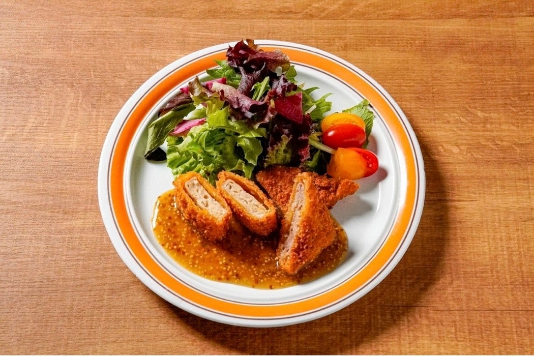 三陸で水揚げされたマグロとカツオを使ったサクサクのカツに、爽やかな風味のマスタードソースをプラスしました。