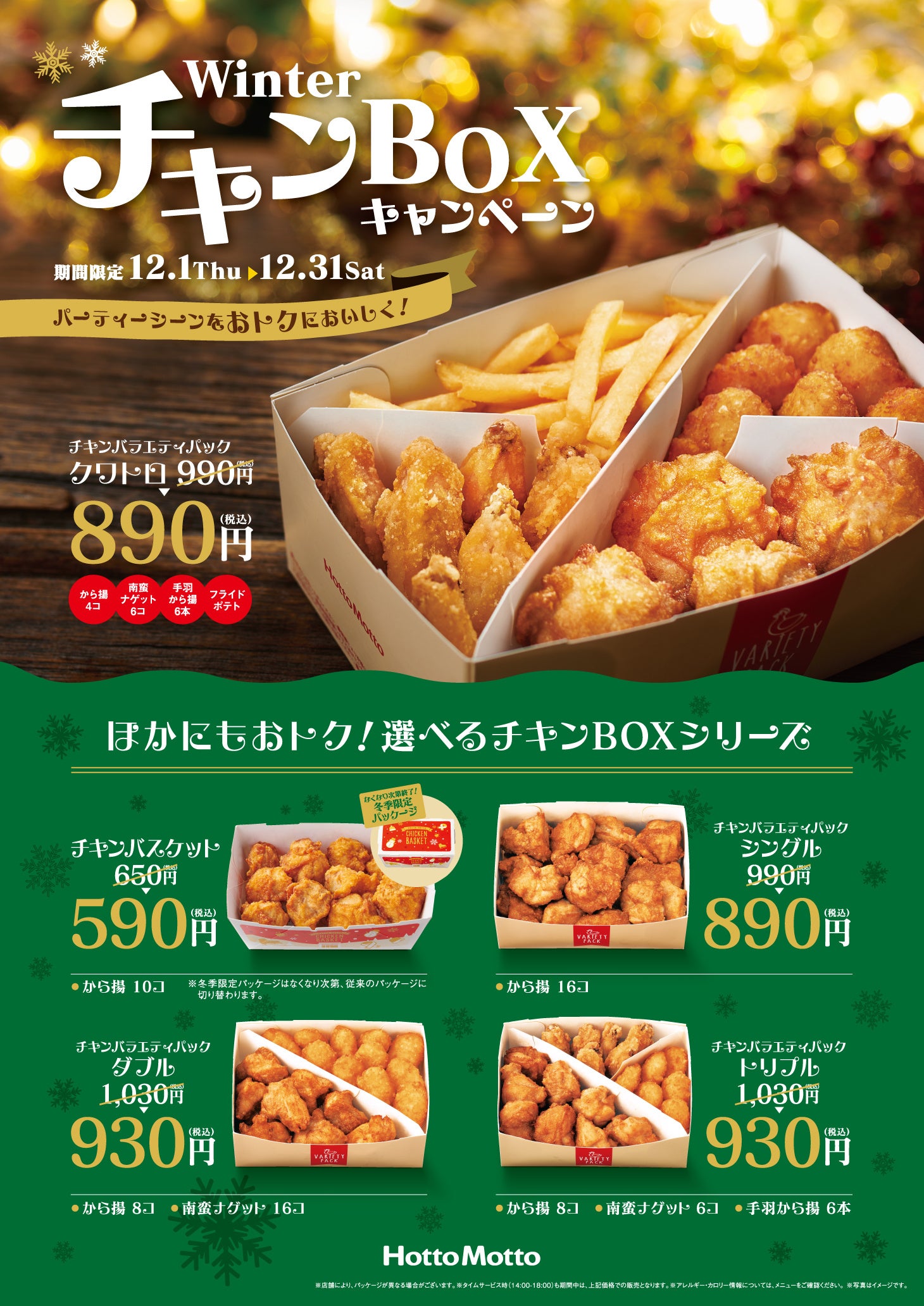 「ほっともっと」クリスマスや年末の食卓は「ほっともっと」のチキン!最大100円引きの特別価格 WinterチキンBOXキャンペーン 冬季限定パッケージも 12月1日(木)~12月31日(土)