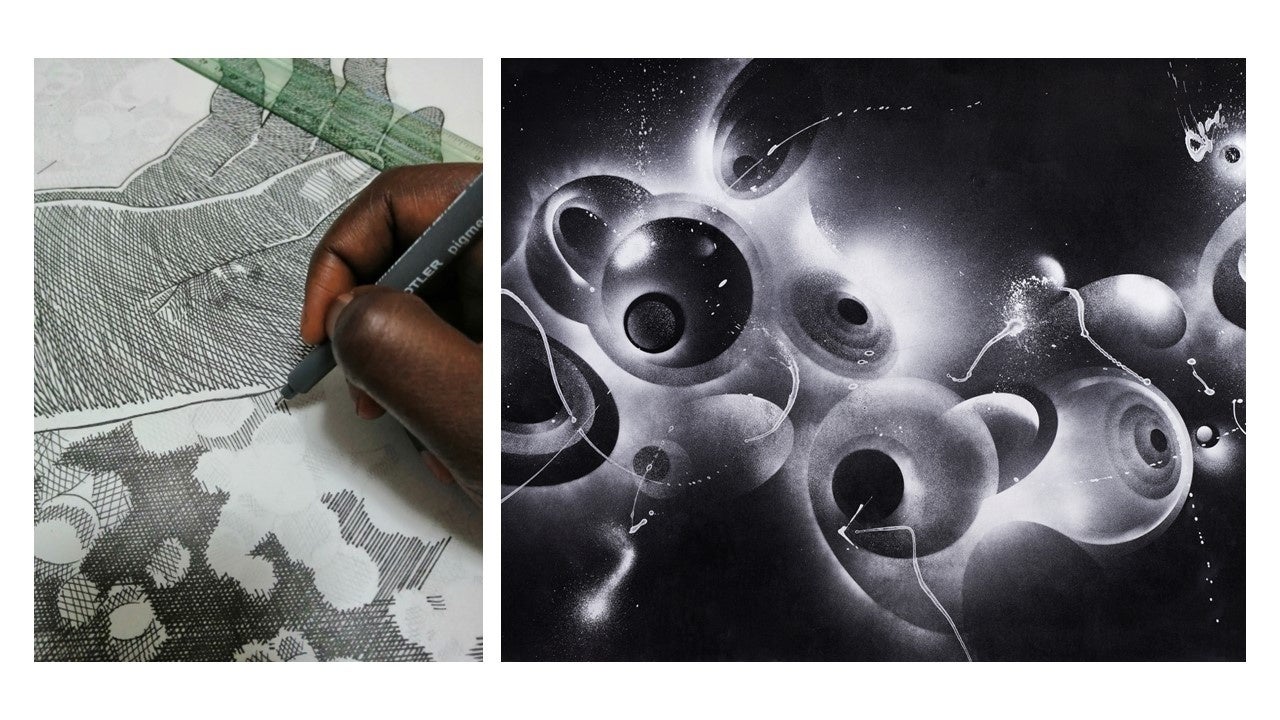 左/image 1:(本書より)シクステ・カキンダ “Monologue II” (detail panel 1, work in progress), drawing on paper, 2020 © Sixte Kakinda