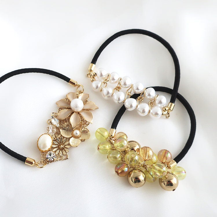 両端にパーツを繋げられるカツラが付いたヘアゴムパーツなど。