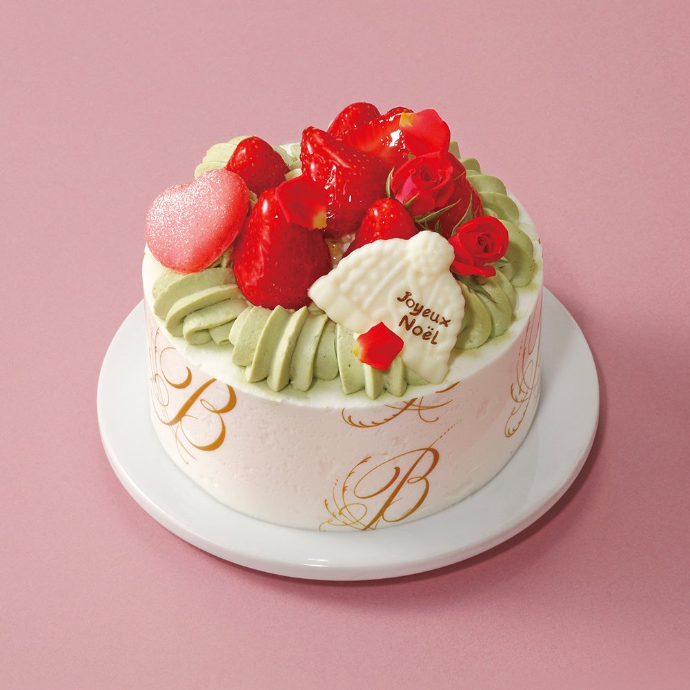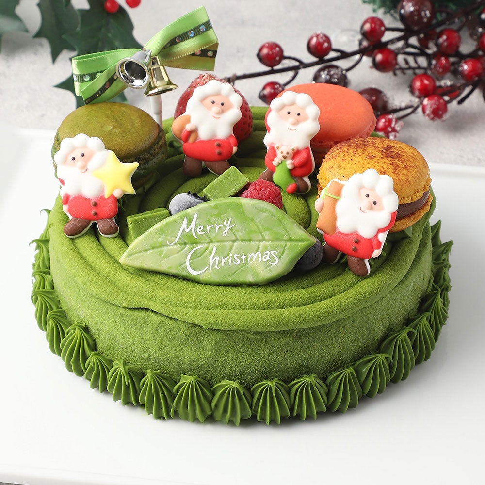 抹茶スイーツをこよなく愛するパティシエ、長谷川裕次氏が本年のクリスマスケーキのテーマにしたのは<抹茶×フルーツ>。厳選された茶葉による抹茶のうまみとほんのりレモンの香り、マカロンも添えて演出された華やかさが魅力のケーキです。