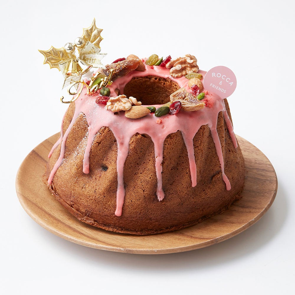ストロベリーのアイシングにクランベリーやラズベリーを合わせて飾り付け、食べるごとに様々な香りが楽しめるフォトジェニックなクグロフ。ドイツのクリスマス菓子、シュトーレンのようにラム酒に漬け込んだドライフルーツ、ナッツを合わせ、生地にはアールグレイの茶葉とスパイスを使用して焼き上げました。