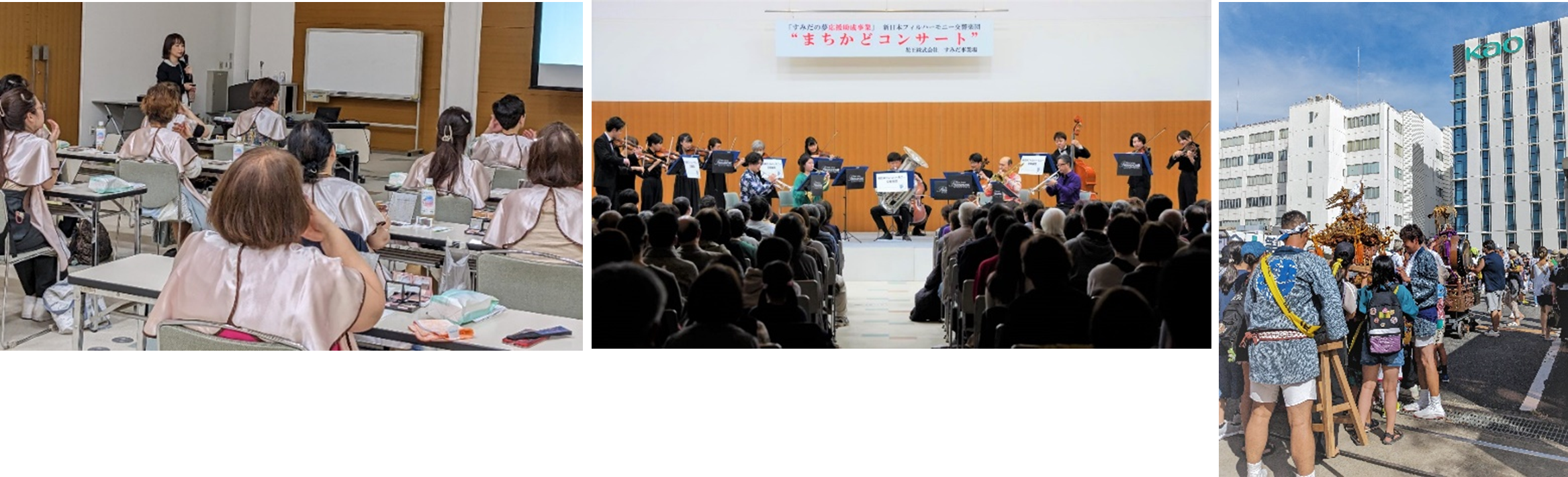 そして、花王グループで最も多くの社員が在籍するすみだ事業場は、周辺に一般住宅の多い地域社会の一員として、地域の皆さまとの文化交流活動や生活者研究などを通じて、地域とともに発展してきました。
