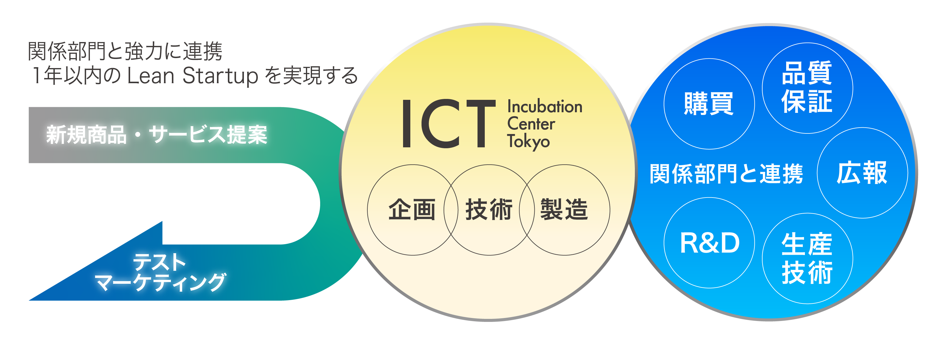 東京工場は、量産品の生産工場から、新たな製品やサービスのアジャイル開発を生産面から支援するインキュベーションセンター東京(ICT)へと生まれ変わりました。新たな市場を開拓し、これまでになかった斬新な製品やサービスを創発することにより、生活者が求める真に魅力的なソリューションを提供していくことがICTの使命です。