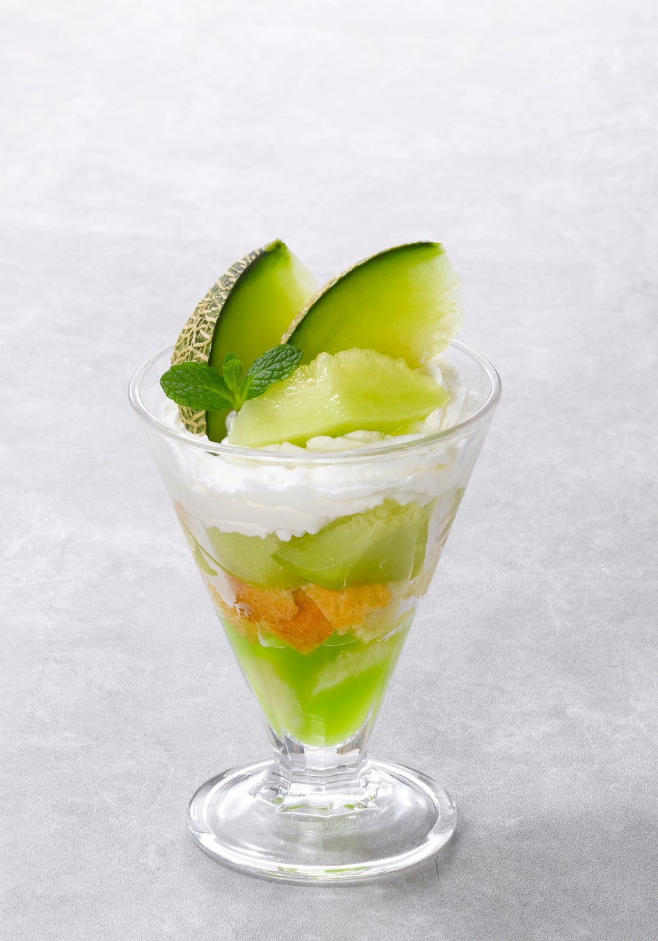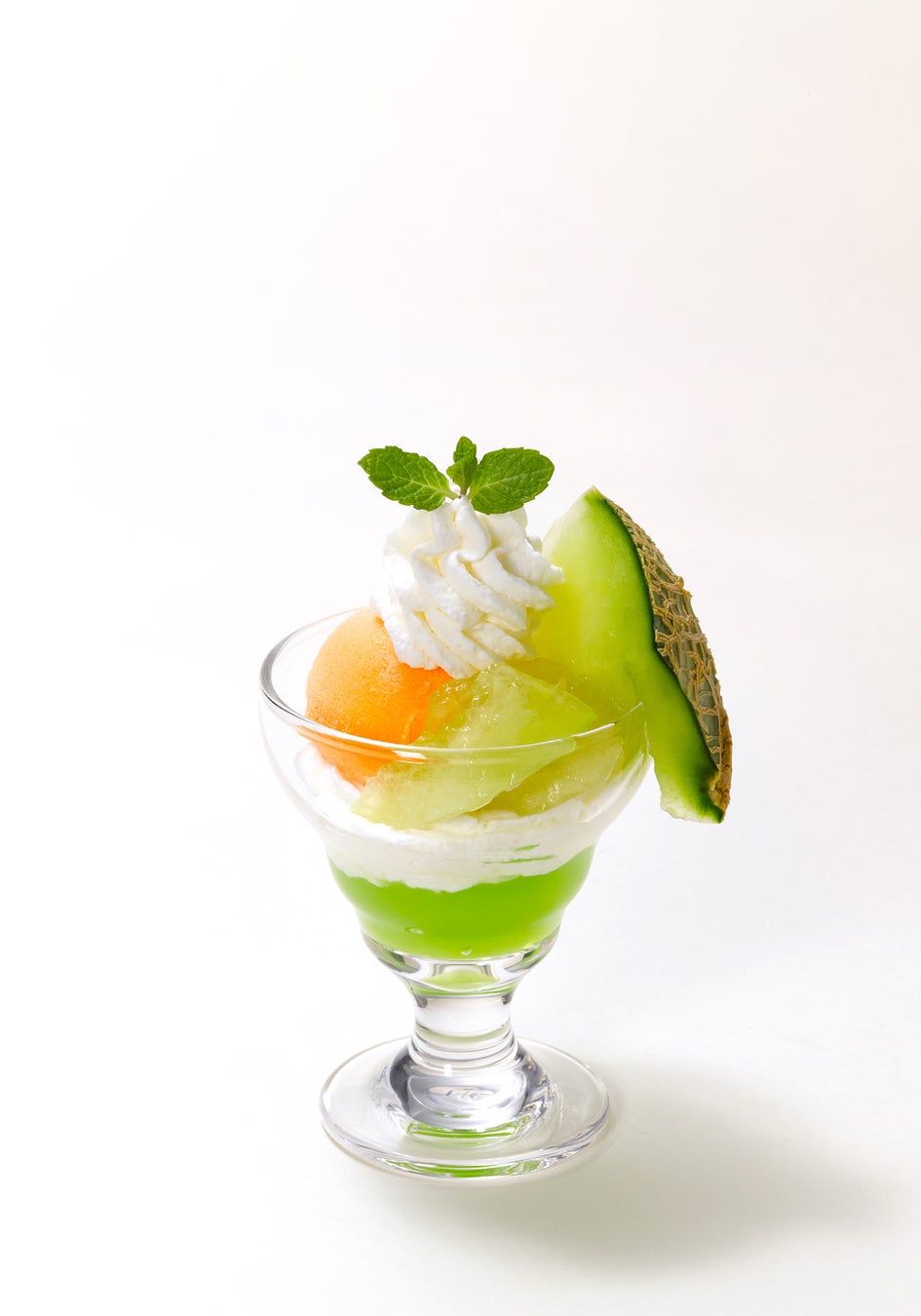 フレッシュメロンや、アイス、ゼリーを合わせた食後にもぴったりなメロンづくしのプチパフェ。