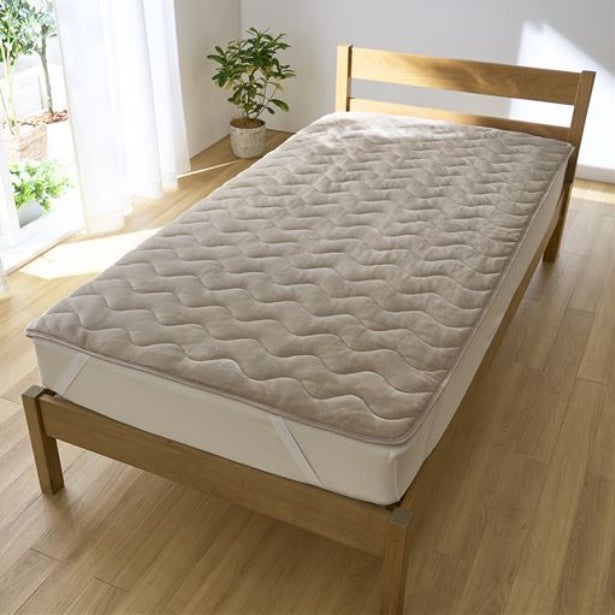 うさぎと添い寝しているかのような心地よさをもたらすパッドシーツ。ふんわりとしたキルトで適度な厚みとクッション性があり、快適な寝心地をサポートします。四隅ゴム仕様でしっかりフィットし、安定感も抜群です。