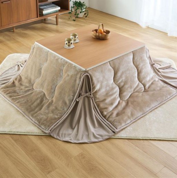 もふもふ、ふわふわのボリューム感はそのままにコンパクト設計で省スペースに最適なこたつ掛け布団です。コーナー部分はひも付きで布団の広がりを抑え、暖気が逃げにくく、保温効果が高まるのも嬉しいポイント。