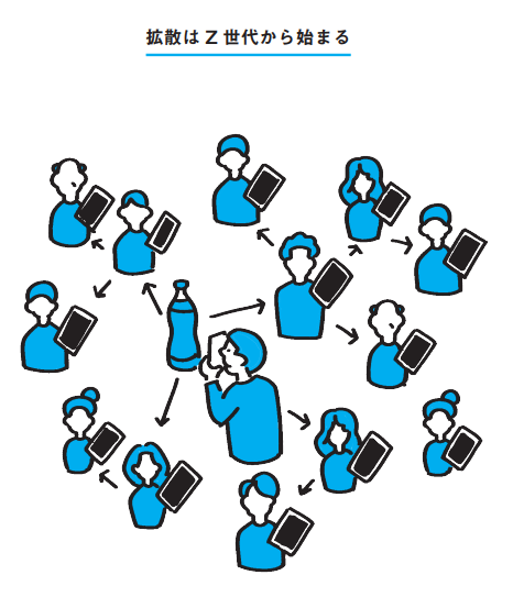 Z世代は「SNSネイティブ」といわれ、日常的にSNSを使うことが当たり前の環境で育っています。もちろん全世代の人がSNSを使いますが、やり取りの頻度や相手の数はZ世代のほうが圧倒的に多いといえます。彼らが商品やサービスについての情報を、知人・友人にシェアする。それを知った人たちが、また周囲にシェアする。そうして世代を超えて拡散していきます。