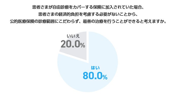 ・患者さまが自由診療をカバーする保険に加入していた場合、最善の治療を行うことができると考える医師は80%