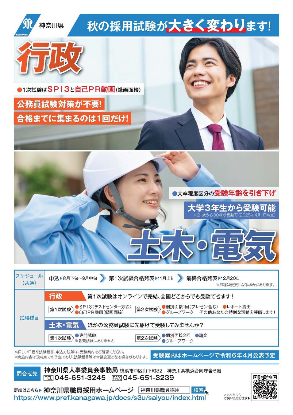 ・その他、採用試験・選考情報や説明会の申込方法は、神奈川県職員採用ホームページを御覧ください。