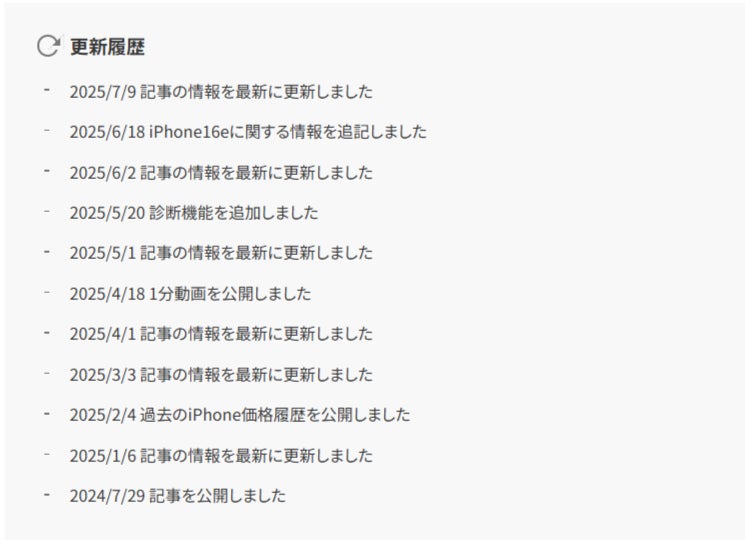 更新履歴機能は、以下の記事から確認できます。今後、他記事にも掲載予定です。