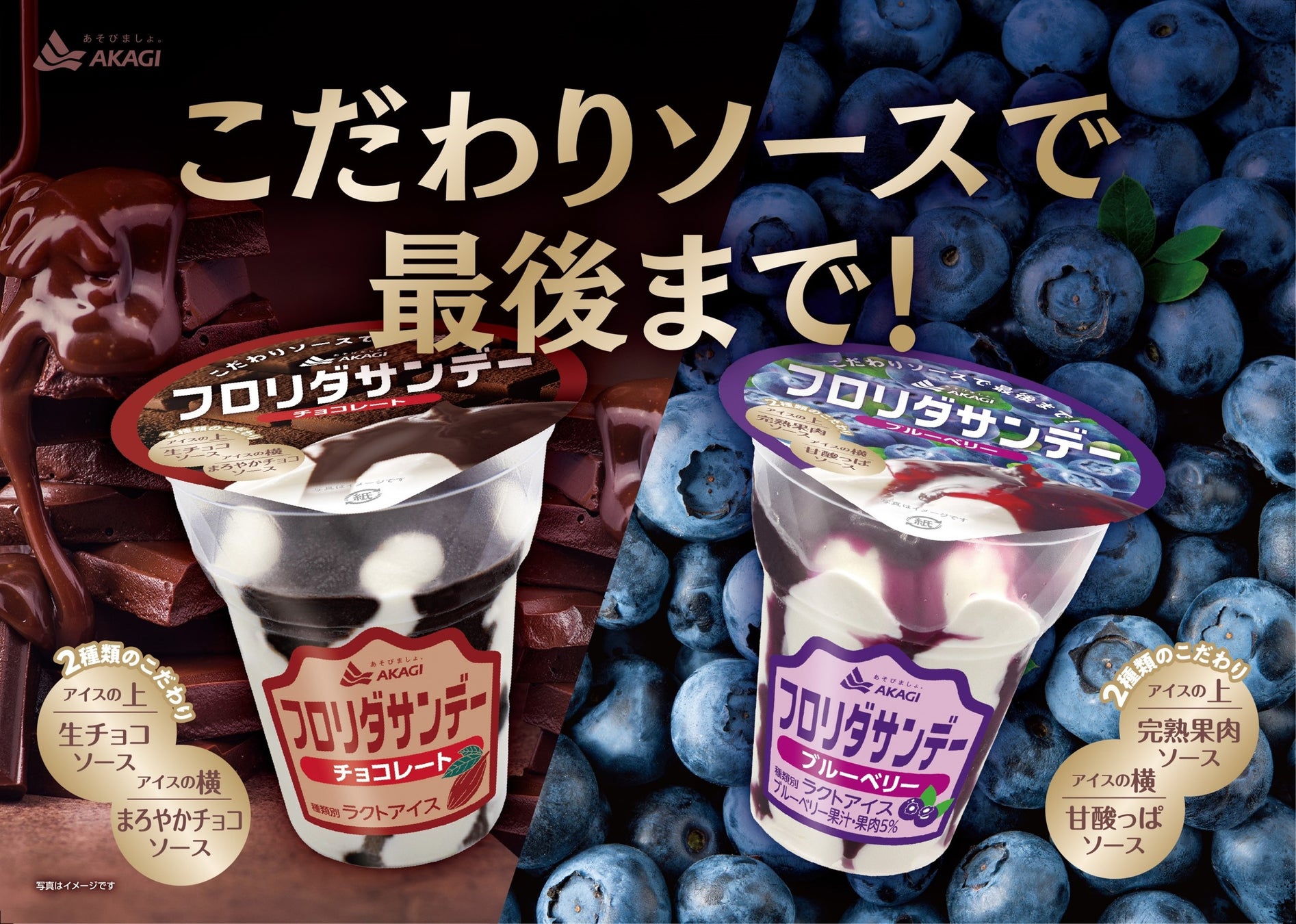 「フロリダサンデー」は1980年代に発売していた商品の復刻版で、たっぷり入ったソースが特徴のアイスです。今回新たに登場する「フロリダサンデーチョコレート」は、1980年代発売当初のフレーバーであり、当時一番人気だった「フロリダサンデーチョコ」を、令和版にアレンジした商品です。