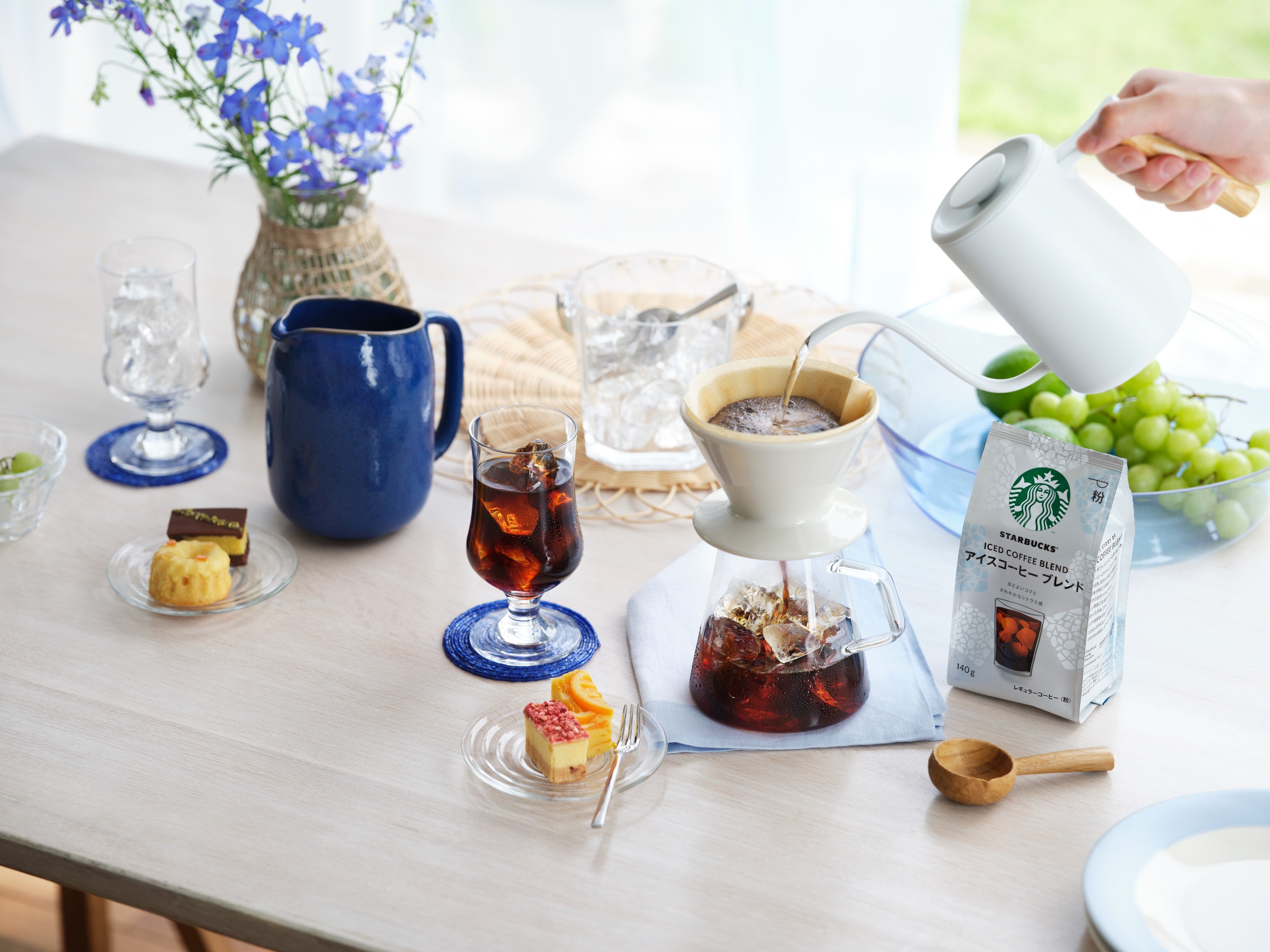 自宅やオフィスで手軽に楽しめる家庭用コーヒー製品として、「レギュラーコーヒー(粉)」「レギュラーコーヒー(豆)」「スターバックス オリガミ® パーソナルドリップ® コーヒー」の 3 タイプは 2023年3月より夏限定製品として展開中です。アイスコーヒーとして最適な味わいを引き出すために厳選したコーヒー豆をブレンドし、ブラックはもちろん、お好みでミルクや甘みを加えても、カラメルのようになめらかで、ほどよいコクと、さわやかなシトラス感をお楽しみいただけます。また、「おうちが、あなたのカフェになる。」をコンセプトとするコーヒーメーカー「ネスカフェ ドルチェ グスト」向けに開発された「スターバックス® アイス アメリカーノ」も発売中です。